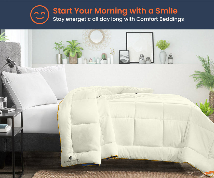 Luxury Ivory and Mediterranean Blue Reversible Comforter