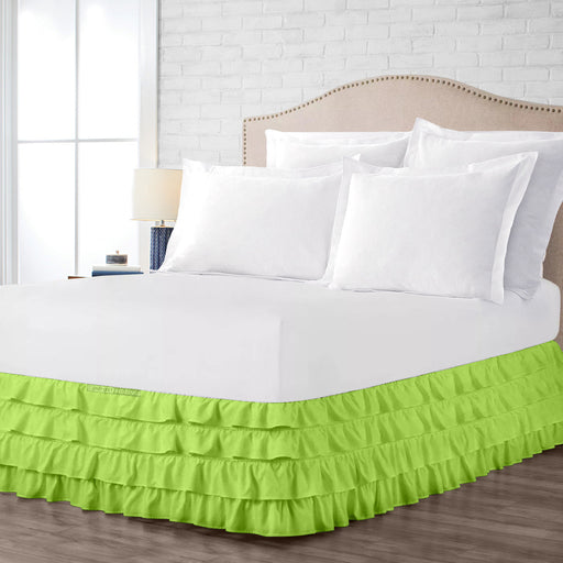 Ornament Your Suites Or Beds With Our Stylish Bed Skirts. ComfortBeddings offers the perfect finished Parrot Green Waterfall Ruffled Bed Skirt ble...