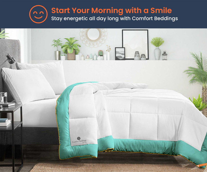 Comfort beddings cozy and comfortable Aqua Green Dual Tone Comforter is made with the finest excellent 100% Egyptian Cotton for the ultimate comfort experience with 250 GSM microfiber filling. This dual-tone Comforter is durable and lasts for years.