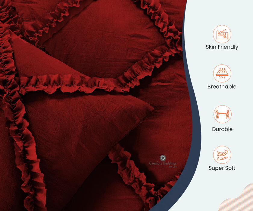 This Burgundy Diamond Ruffled Duvet Cover comes with a hidden enclosure, making it easy to put and remove the duvet within it easily. The duvet cover set is able to create a design statement on its own. Its versatile layering creates its own personal look, and the ruffled pattern gives an inflated decorative look as per your decoration.
