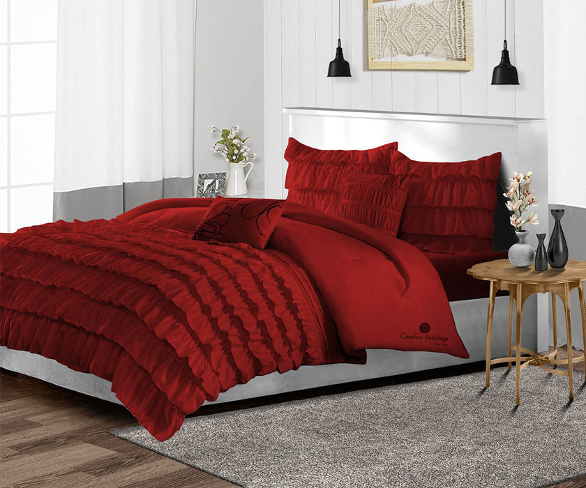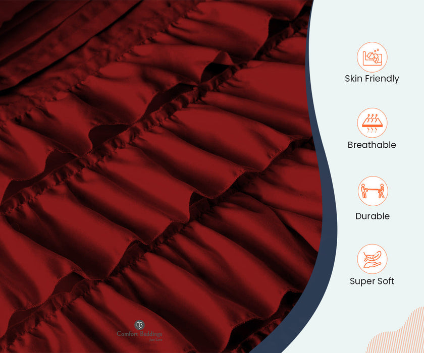 Give your space a new look and brighten up your space with this ultra-modern and elegant Burgundy Ruffle Duvet Cover Set from Comfortbedding. It is easy to insert and remove the duvet from this duvet cover as it comes with a zipper enclosure. This provides styling elements to duvets and also keeps duets clean. There are various sizes (queen, king, calking, full, and twin) available with us that fit exactly right to your bedding.