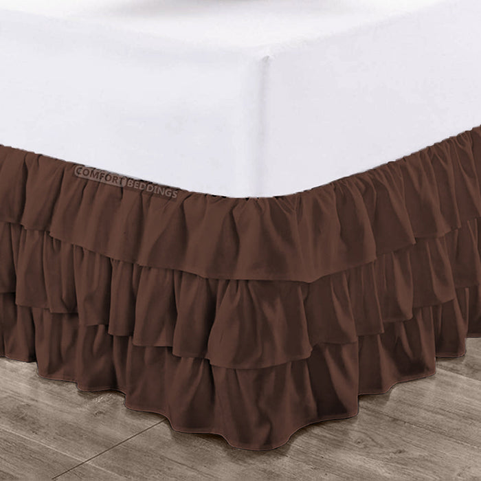 Ornament Your Suites Or Beds with Our Stylish Chocolate Multi Ruffle Bed Skirts. ComfortBeddings offers the perfect finished Chocolate Multi Ruffle Bed skirts blended well with 100% microfiber and cotton. It is cautiously crafted to deliver your style, along with extra storage space at its best.