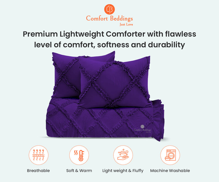 Bask under the bliss of Comfort bedding comforter. These Purple Diamond Ruffle Comforter sets are super easy to wash. At laundry time, it is easy to clean the regular washing machine.