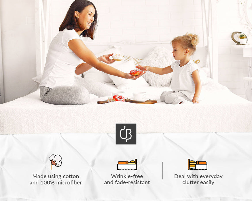Ornament Your Suites Or Beds With Our Stylish Bed Skirts. Comfort Beddings offers the perfect finished bed skirts blended well with 100% microfiber. A Purple Pinch Bed Skirt is cautiously crafted to deliver your style, along with extra storage space at its best.
