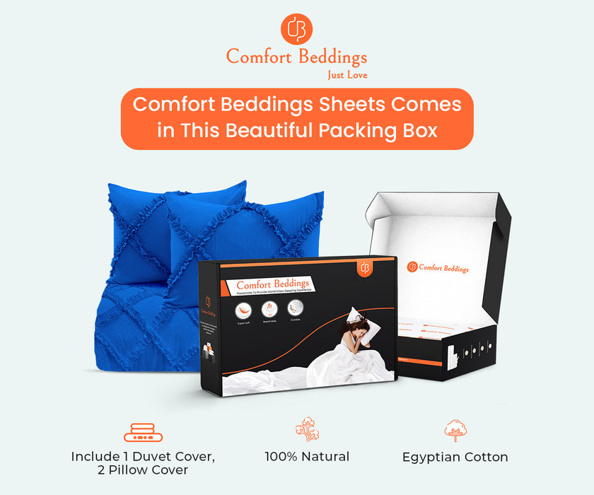 ComfortBedding’s cozy and comfortable Royal Blue Diamond Ruffled Duvet Cover Set is made with the finest quality Egyptian cotton for the ultimate comfort experience. The Duvet Covers are durable and last for years.