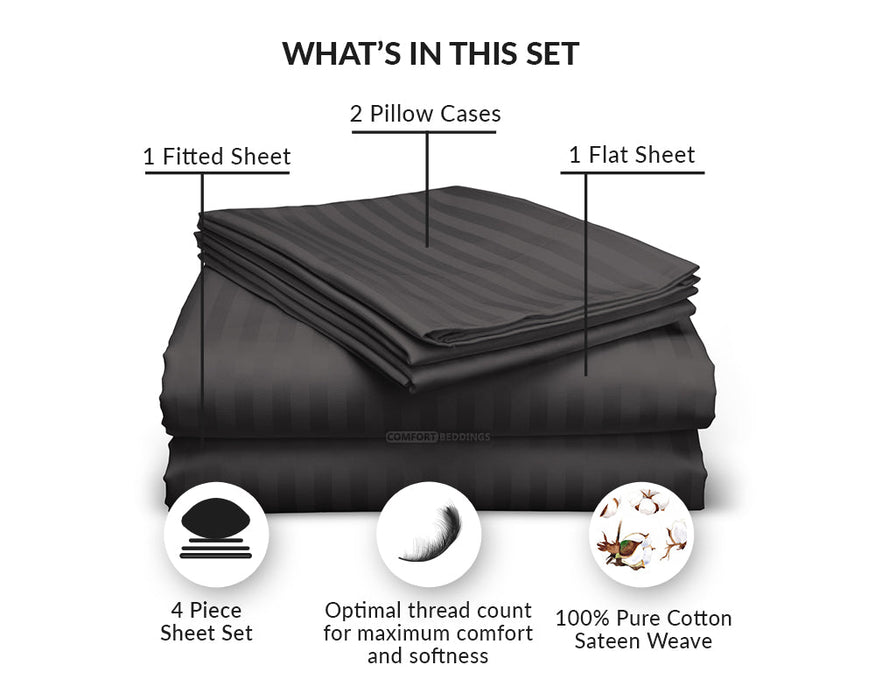 Thus, at Comfortbeddings we offer luxury Dark Grey Stripe Sheets Set well known for their comfort. We procure our home-grown cotton and transform it into the finest sheets in the world. This creates a difference that you must feel for yourself.