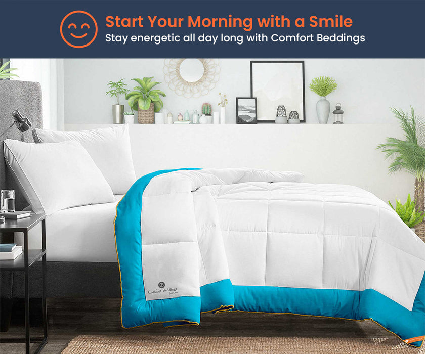 Comfort beddings cozy and comfortable Turquoise Blue Dual Tone Comforter is made with the finest excellent 100% Egyptian Cotton for the ultimate comfort experience with 250 GSM microfiber filling. This dual-tone Comforter is durable and lasts for years.