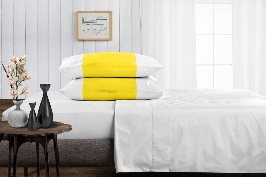 Comfort Beddings offers the best Yellow with White Contrast Pillowcases in the market as they have been made from the finest quality Egyptian Cotton material for your ultimate comfort experience.